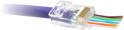 The design of the passthrough connector/plug CAT6 allows the twist in each wire pair to be maintained as close as possible to the contact of the plug. This will significantly reduce ”crosstalk” and increase the performance capacity of the vein pair, thus benefiting from the best possible bandwidth.