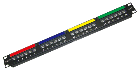 The CAT6 24 port patch panel is designed to exceed ANSI/TIA-568-C.2 performance specifications, and they are backwards compatible with earlier lower-level wiring standards. DINTEK CAT6 panels support both T568A and T568B connection schemes and can be completed with an industry-standard 110 or Krone installation punchdown tool. The panels feature a mounting slot for a rail to accommodate DINTEK cable management. This rail easily directs cabling to the back of the panel for better routing and uncluttered assembly. Combined with other DINTEK PowerMAX™ products, they are the perfect solution for all your VoIP and data communications needs.